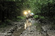 and Discoverys plough over wet forest tracks, force their way uphill