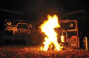 we sit together until late in the night. The Land Rovers form a
